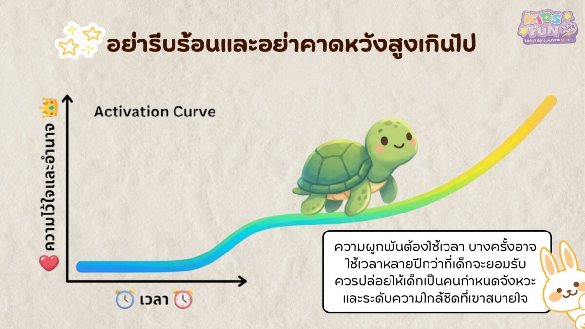 1.อย่ารีบร้อนและอย่าคาดหวังสูงเกินไป: ความผูกพันต้องใช้เวลา บางครั้งอาจใช้เวลาหลายปีกว่าที่เด็กจะยอมรับ ควรปล่อยให้เด็กเป็นคนกำหนดจังหวะและระดับความใกล้ชิดที่เขาสบายใจ