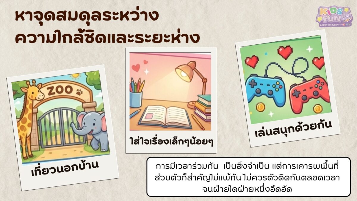 เคล็ดลับทิ้งท้าย: “ใกล้ชิดกันมากพอที่จะรู้สึกถึงรัก แต่ก็มีระยะห่างพอให้แต่ละคนเป็นตัวของตัวเอง”